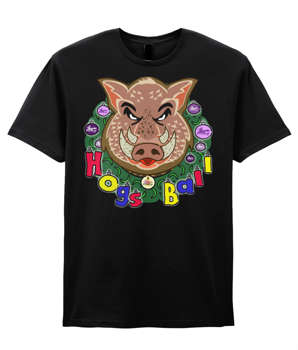 Our Hogs Ball Hog emblem printed on the front of this black unisex Gildan Ringspun t-shirt.