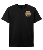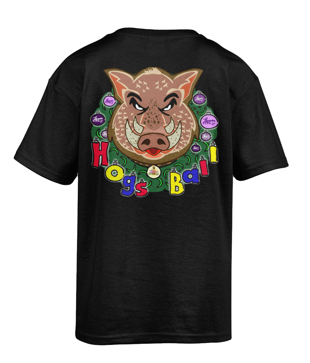Our Hogs Ball emblem printed on the front with a larger back print on this black unisex Gildan Ringspun t-shirt.